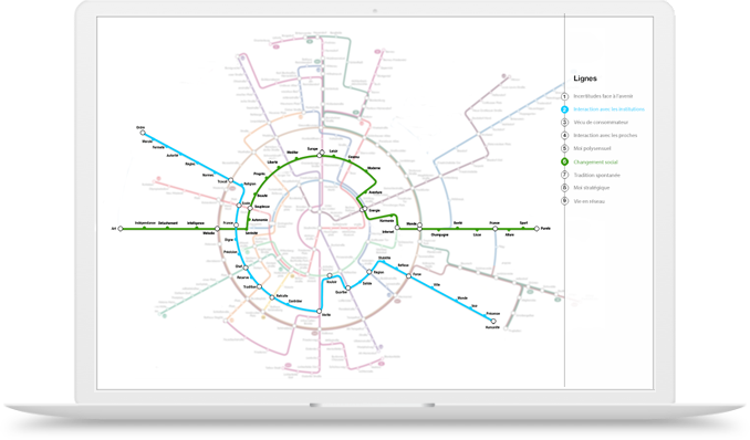 Vous apporter de nouveaux outils pour mieux appréhender notre monde en mutation, capter l’émergence de nouveaux imaginaires collectifs, et comprendre, dans leur diversité culturelle, les logiques de perception, d’adhésion ou de rejet qui influencent les comportements des citoyens.
